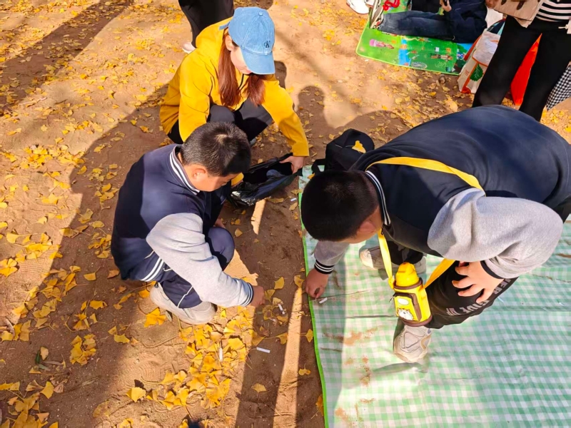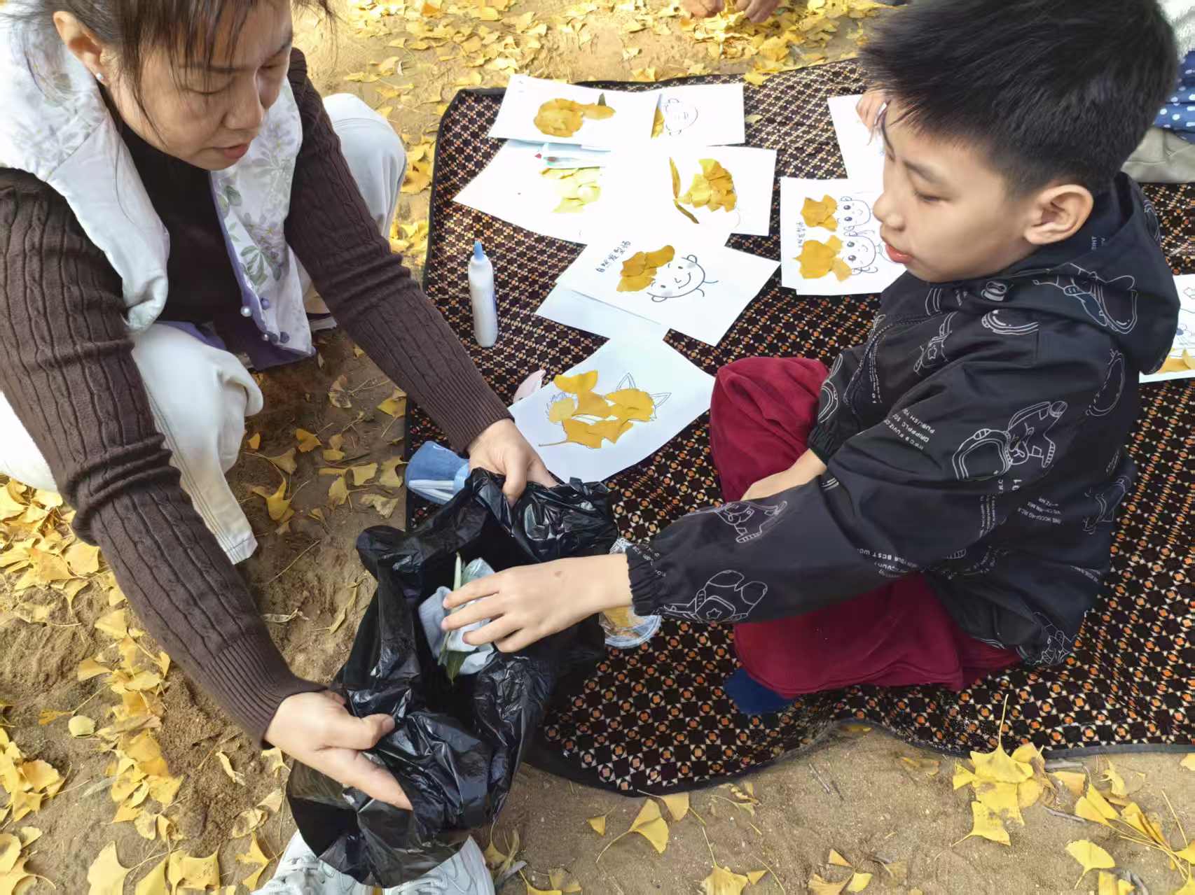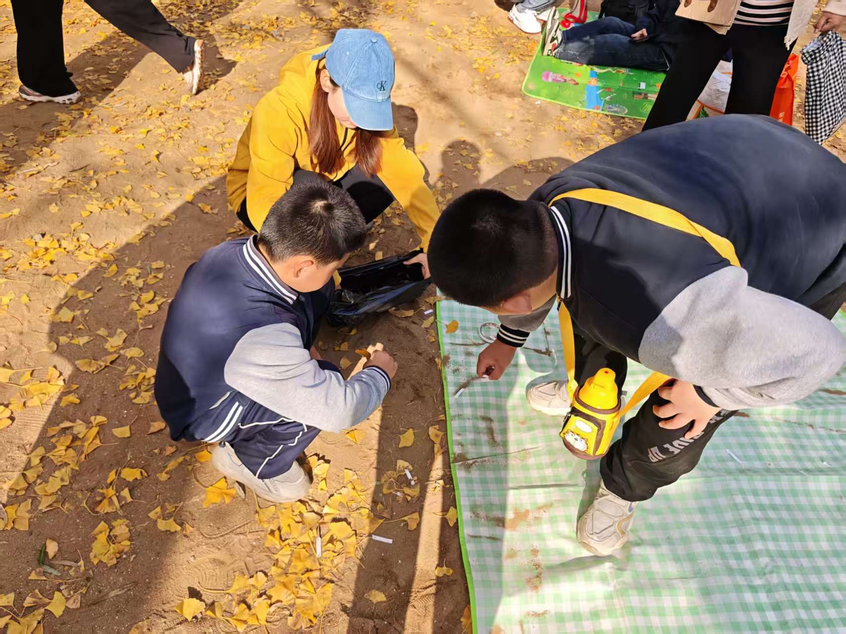 文明收尾,涵养环保意识 活动尾声,老师带领孩子们一起整理场地,捡拾纸屑与落叶,并将垃圾妥善装入袋中。孩子们认真模仿、积极参与,在劳动中体会到环保的意义。这一小小的行动,不仅维护了公园的整洁,也在他们心中播下了文明与责任的种子。