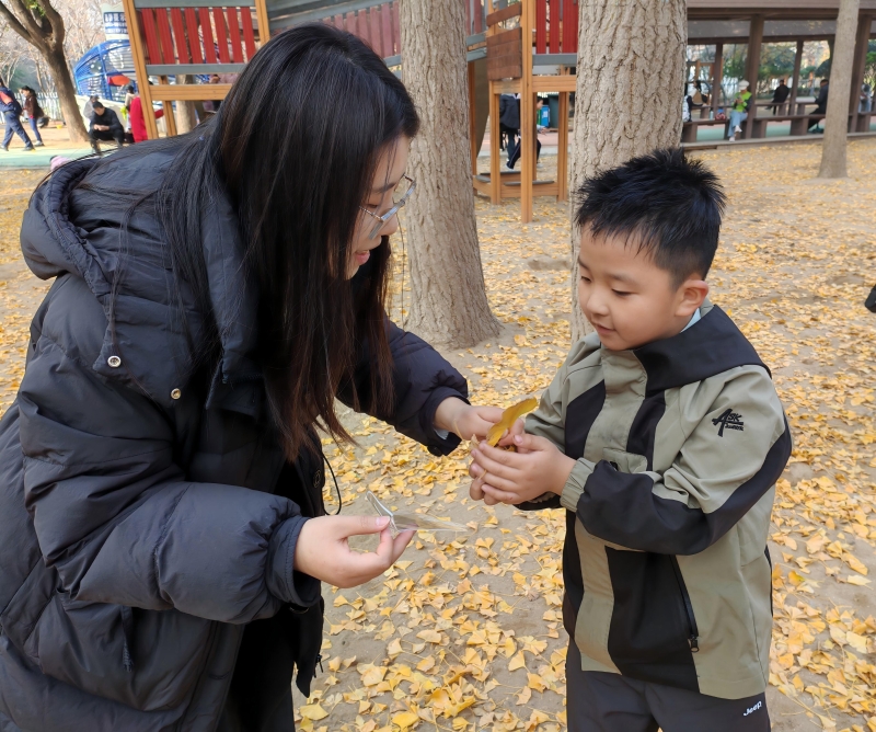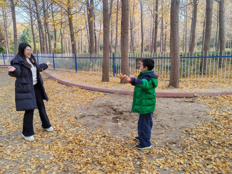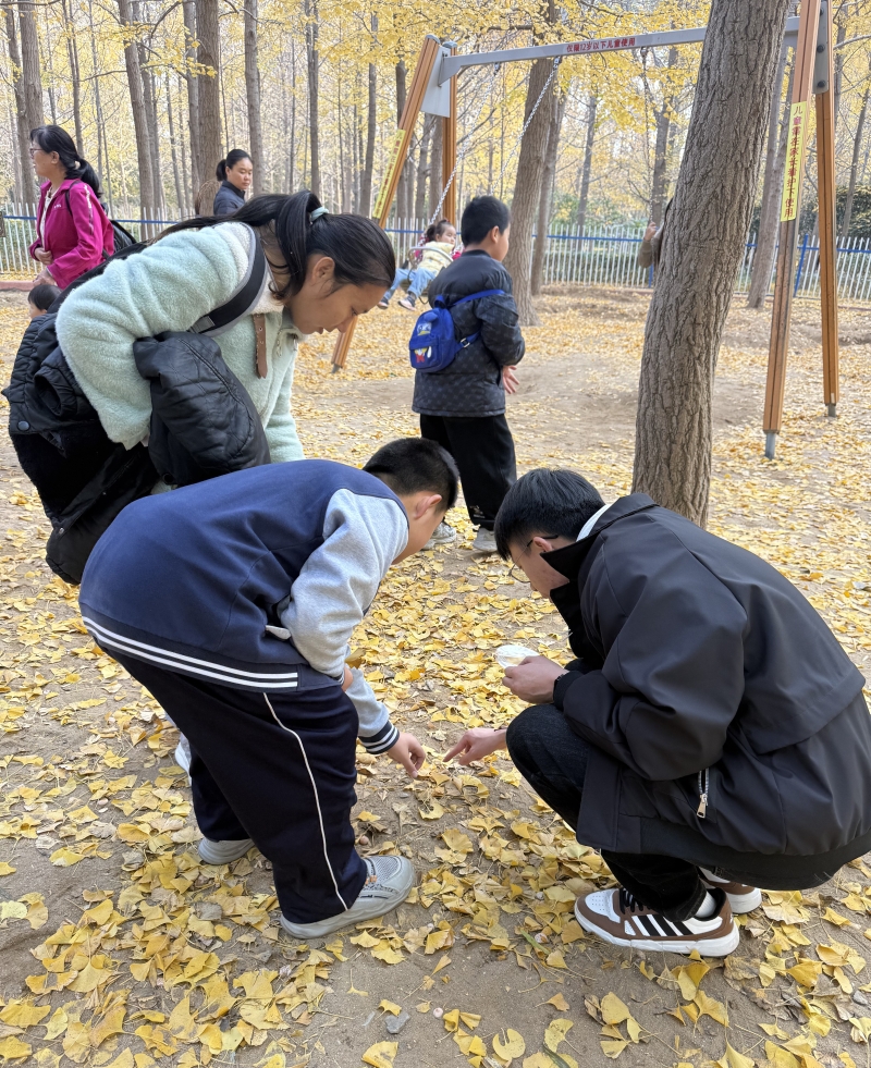 秋阳正好,风染枝叶,11月14日,济南特殊教育中心组织孤独症义教学生、家长及班主任,一同走进济南森林公园,开启一场与秋天的亲密对话。 活动前,班主任已通过课堂讲解,让学生们对银杏叶的形态与生长习性有了初步认识,并细心叮嘱出行注意事项。
