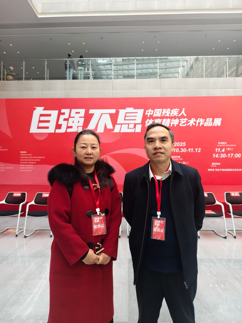 2025年11月4日,展览开幕式隆重举行,济南特殊教育中心副校长黎青华与指导教师董燕受邀出席,共同见证了这一聚焦残疾人艺术风采与体育精神的文化盛事。