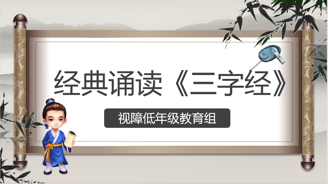 为推动中华优秀传统文化在残疾儿童心中扎根生长,助力视障学生提升综合素养、增强自信,视障低年级教育组特举行“诵经典蒙学 传文化薪火——《三字经》展演”活动。视障低年级全体班主任、学生积极参与其中,共同沉浸式感受中华传统文化魅力,见证视障学子以盲文触摸经典、用童声传递文化薪火的重要时刻。 本次活动以《三字经》经典诵读为载体,充分结合视障学生的感知特点,搭配合诵、快板伴奏、手势动作等多元化形式进行展示,通过形式多样、主题鲜明的展示让视障低年级学生在触摸、聆听与表达中感受中华传统文化的魅力。活动筹备阶段,各班班主任选取浅显易懂、韵律感强的经典段落,通过讲解趣味故事深化学生理解,让学生在诵读中理解中华传统美德。