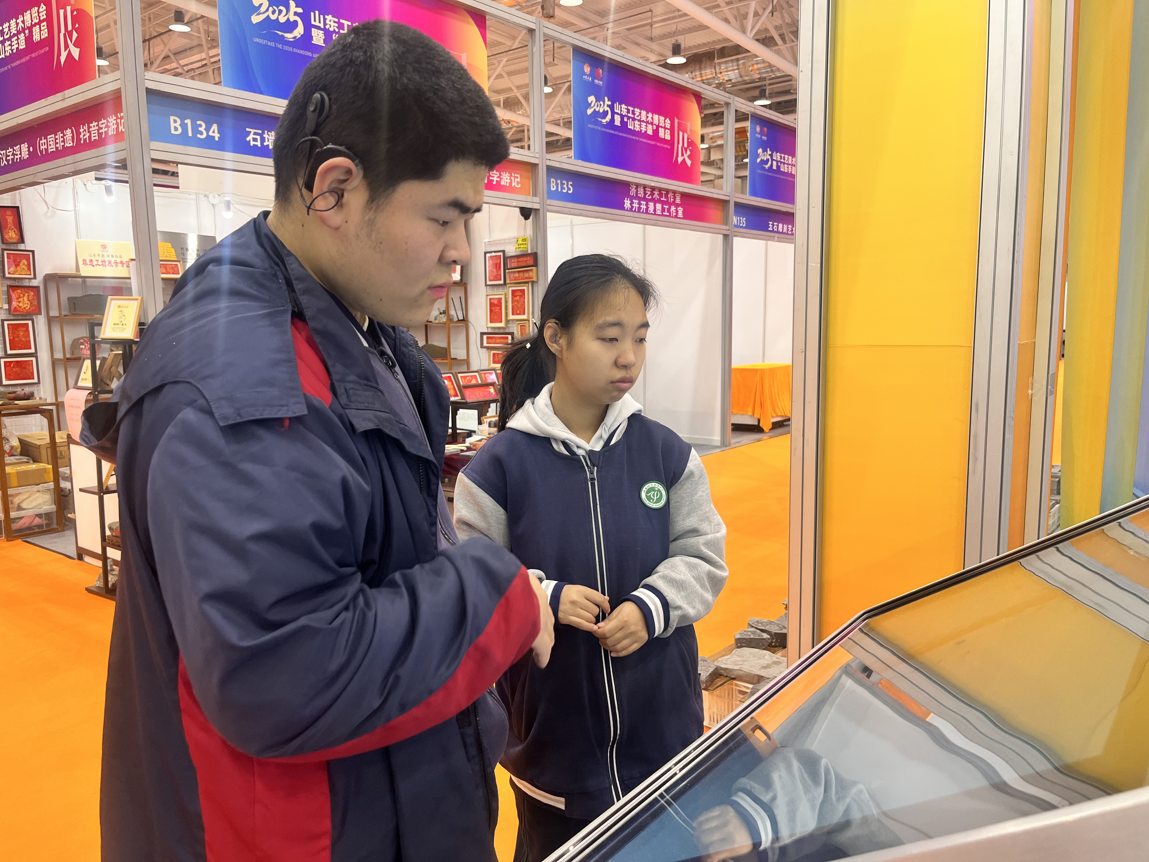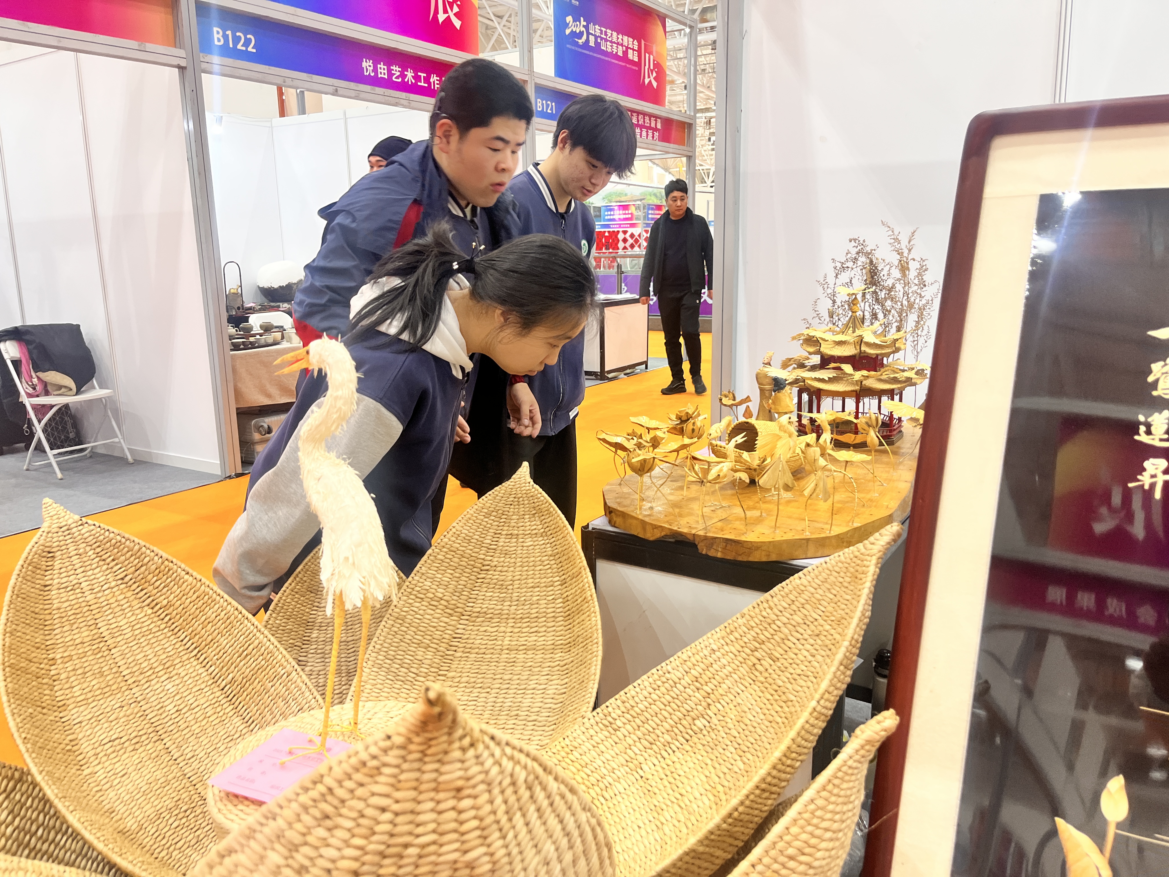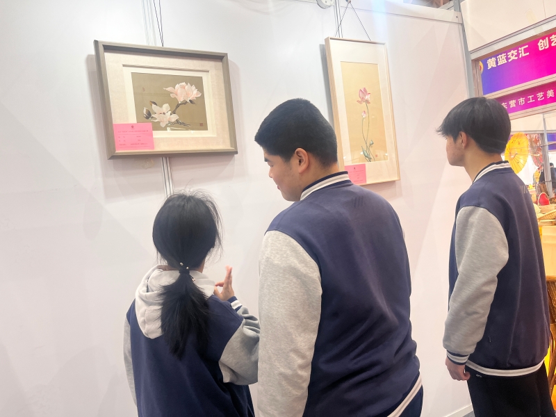 为追寻匠心之源,同学们走出校园,走进高水平的工艺美术作品展览现场。面对精美的刺绣、典雅的陶瓷、创新的现代设计,同学们不仅被精湛技艺所折服,更直观感受到手工艺人持之以恒的专注与热爱,领悟到守艺即守心、守责。
