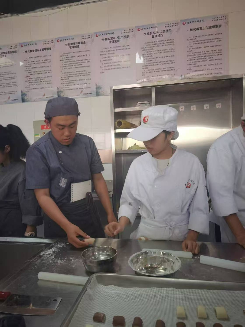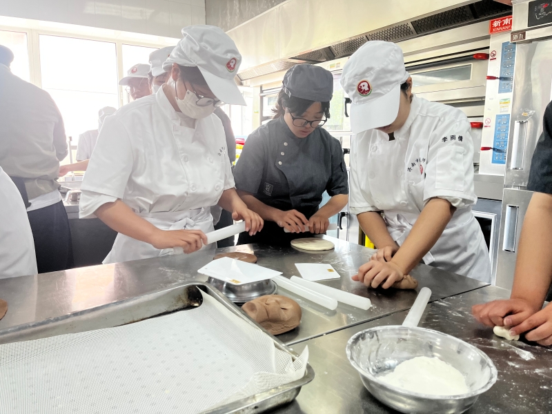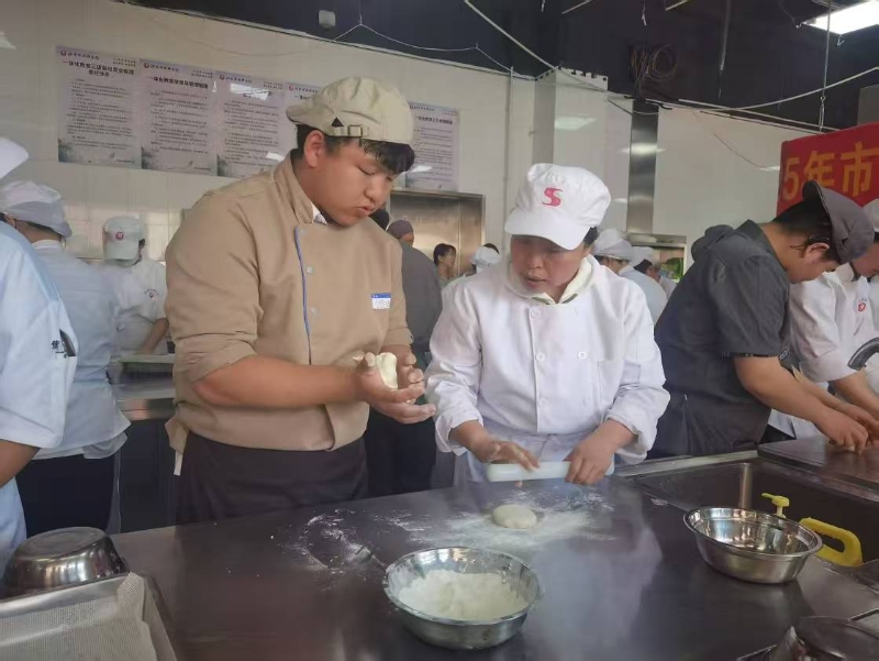 听障职专一、二年级的学生和技师学院面点中级班的学生共上一节中式面点课,一起动手制作了花色馒头,并开心地品尝了学习成果。