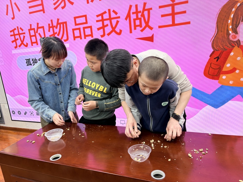 三年级:剥花生 指尖轻动,收获满满。三年级的孩子们静下心来,跟着老师学习剥花生,轻捏果壳、取出果仁,小心翼翼地不浪费、不碎粒,同时将果仁与果壳分类摆放。这项劳作充分锻炼了孩子们的手部力量和灵活度,培养了专注力与耐心,让孩子们在亲手劳作中体会收获的快乐,懂得珍惜劳动成果,感知付出的意义。