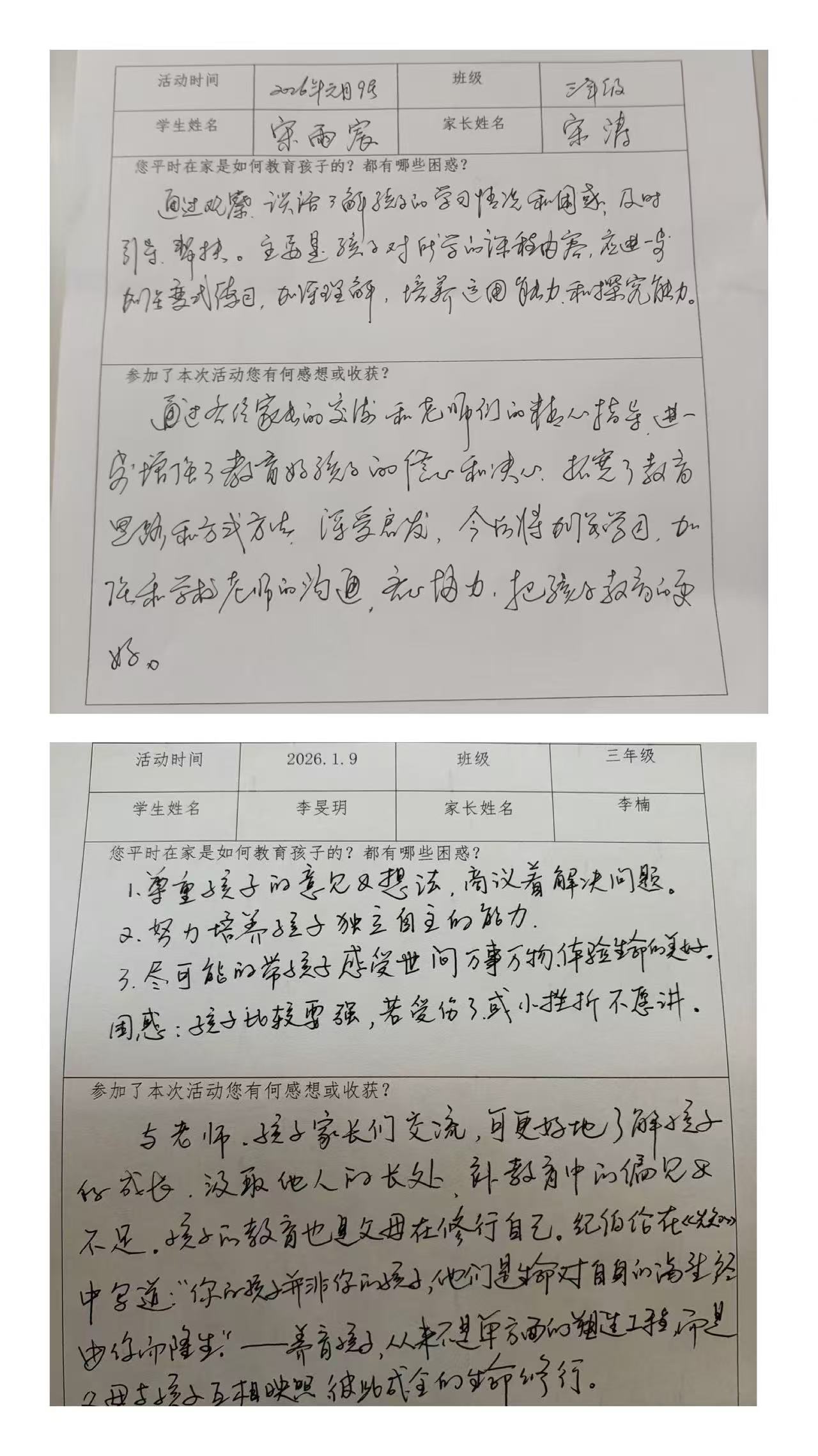 会后,家长们纷纷表示收获颇丰,感触良多,回家后认真填写了反馈表,书写下自己通过本次读书分享的收获与感悟。