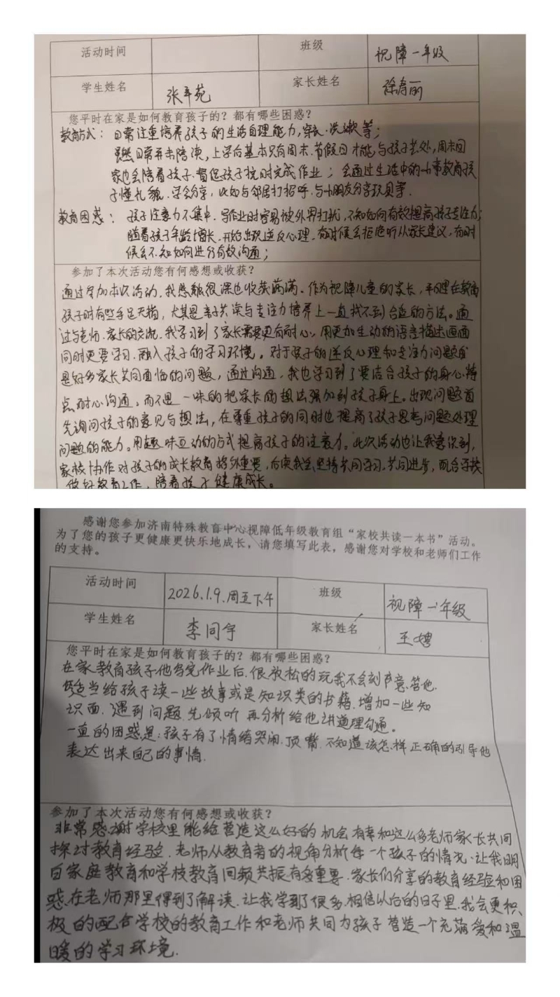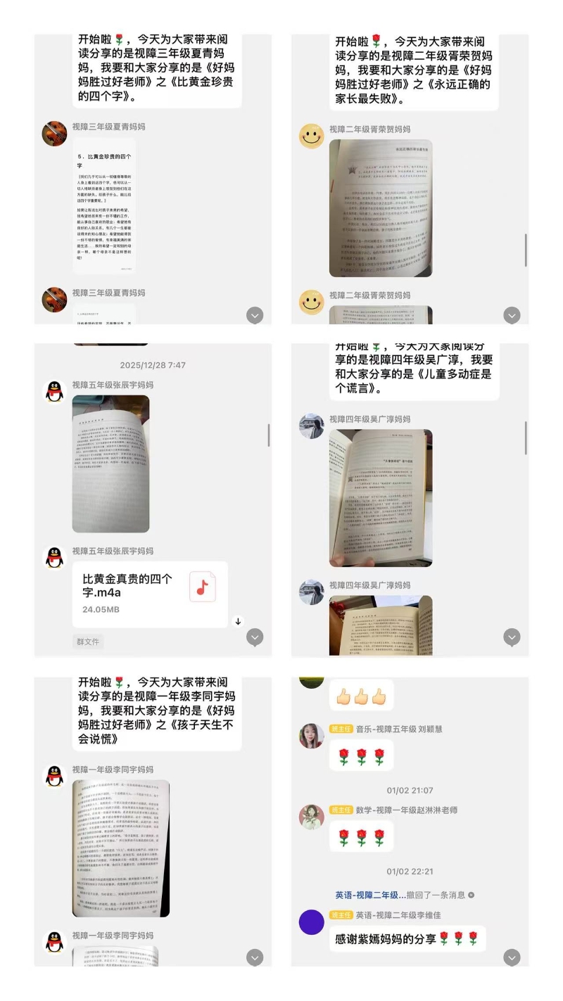 此次“家校共读一本书”活动,以书为媒、以爱育人,有效拉近了家校距离,凝聚了教育合力。今后,视障低年级教育组将持续深化家校合作,开展形式多样的家校共育活动,为特殊教育事业高质量发展注入更多的温暖与力量。