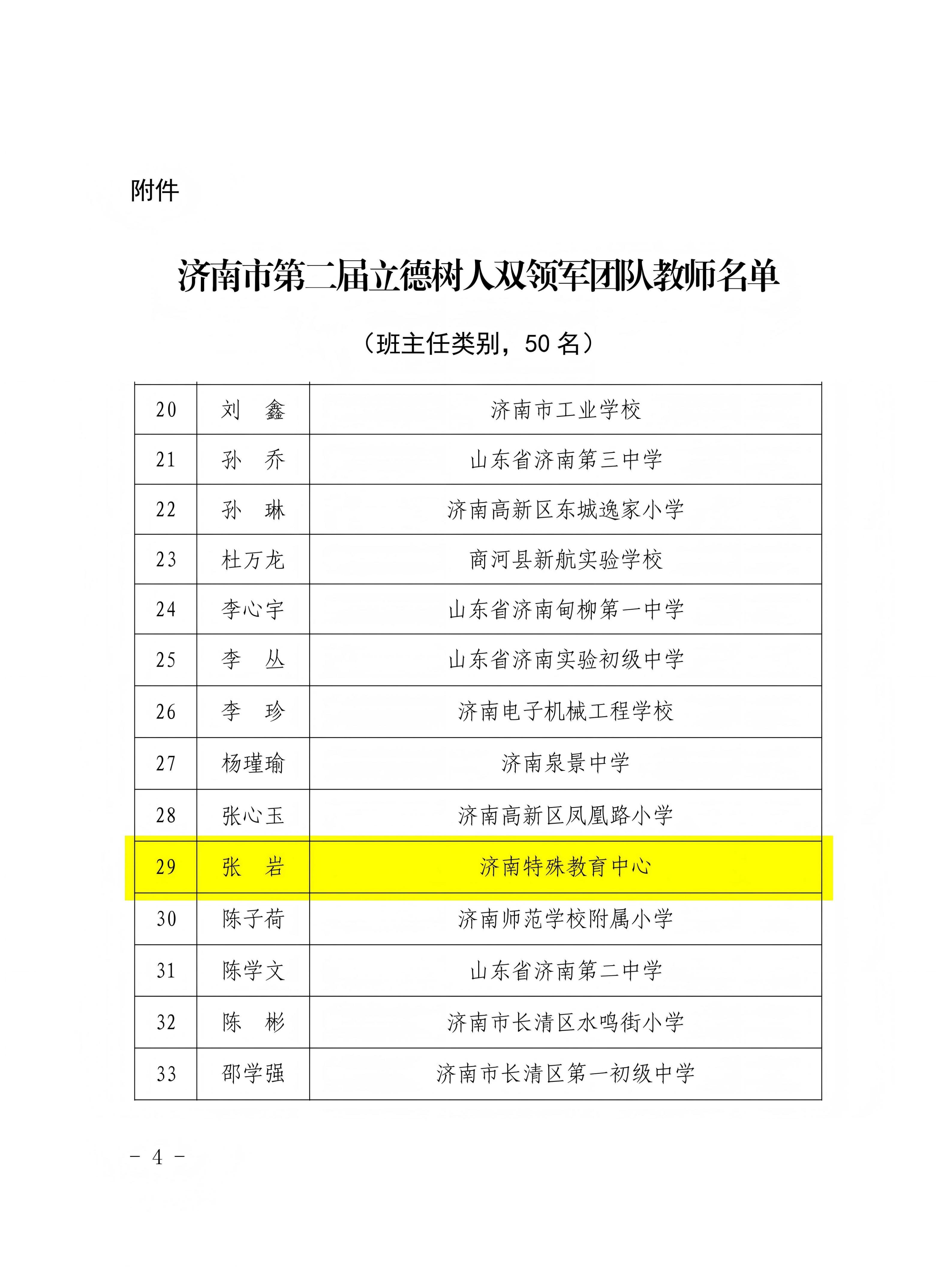 近日,济南市教育局公布济南市第二届立德树人双领军教师名单,经考核认定,共确立100名教师为济南市第二届立德树人双领军教师,济南特殊教育中心张岩、王萍两位教师凭借扎实的专业素养和突出的育人成效获此殊荣,充分展现了学校在教师队伍建设和立德树人工作中的显著成果。