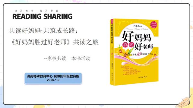 为搭建家校沟通桥梁,凝聚协同育人合力,助力视障学生健康成长,济南特教中心视障低年级教育组以《好妈妈胜过好老师》为共读书目,举办“家校共读一本书”主题活动。视障低年级教育组全体班主任及各班家长代表齐聚一堂,共赴一场温暖的家校共育之约。