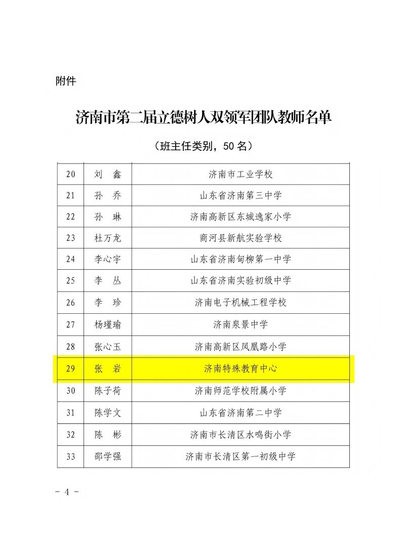 近日,济南市教育局公布济南市第二届立德树人双领军教师名单,经考核认定,共确立100名教师为济南市第二届立德树人双领军教师,济南特殊教育中心张岩、王萍两位教师凭借扎实的专业素养和突出的育人成效获此殊荣,充分展现了学校在教师队伍建设和立德树人工作中的显著成果。