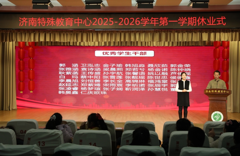 时光荏苒,岁月如歌。近日,济南特殊教育中心在演播大厅隆重举行2025-2026学年第一学期休业式。全体班主任、副班主任、导师与学生齐聚一堂,共同回顾本学期的成长与收获,展望充满希望的假期生活。