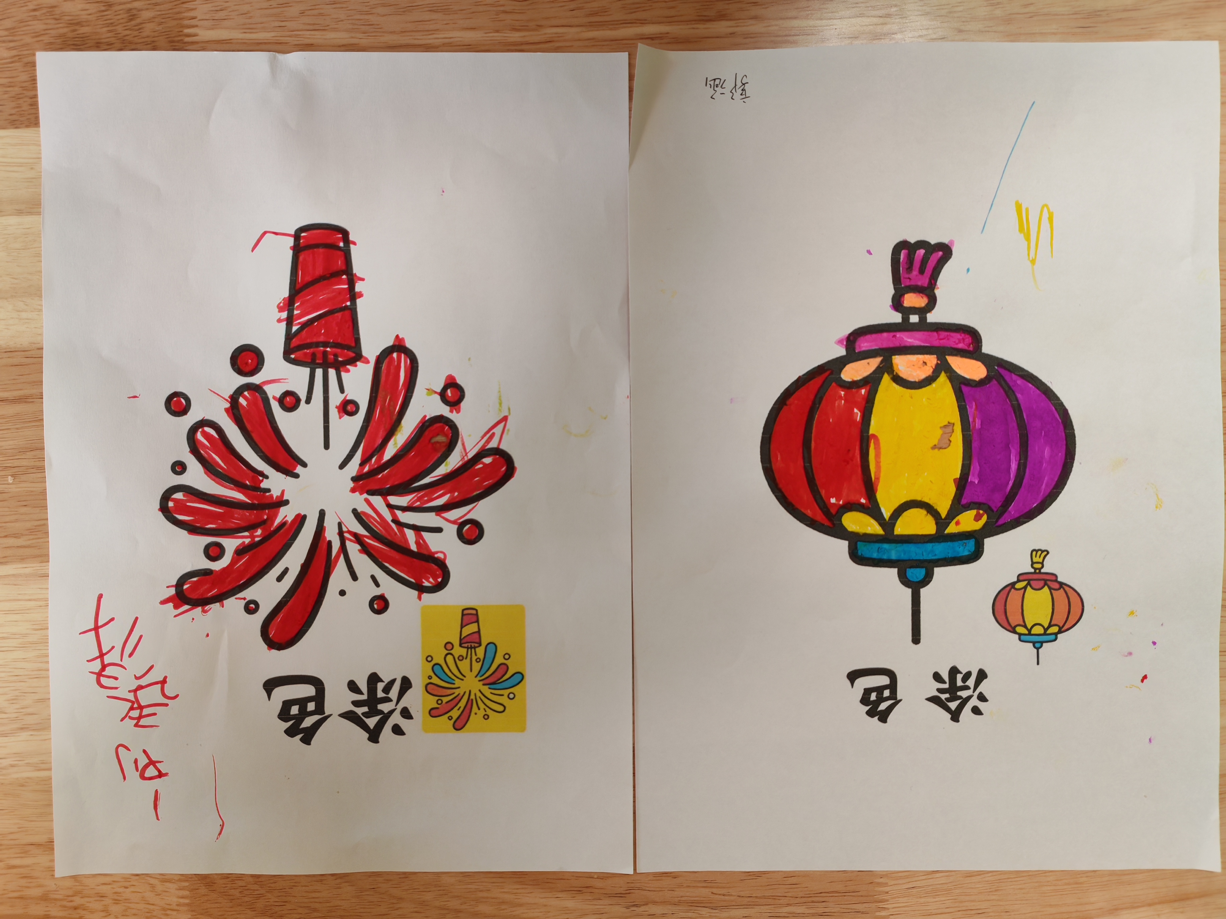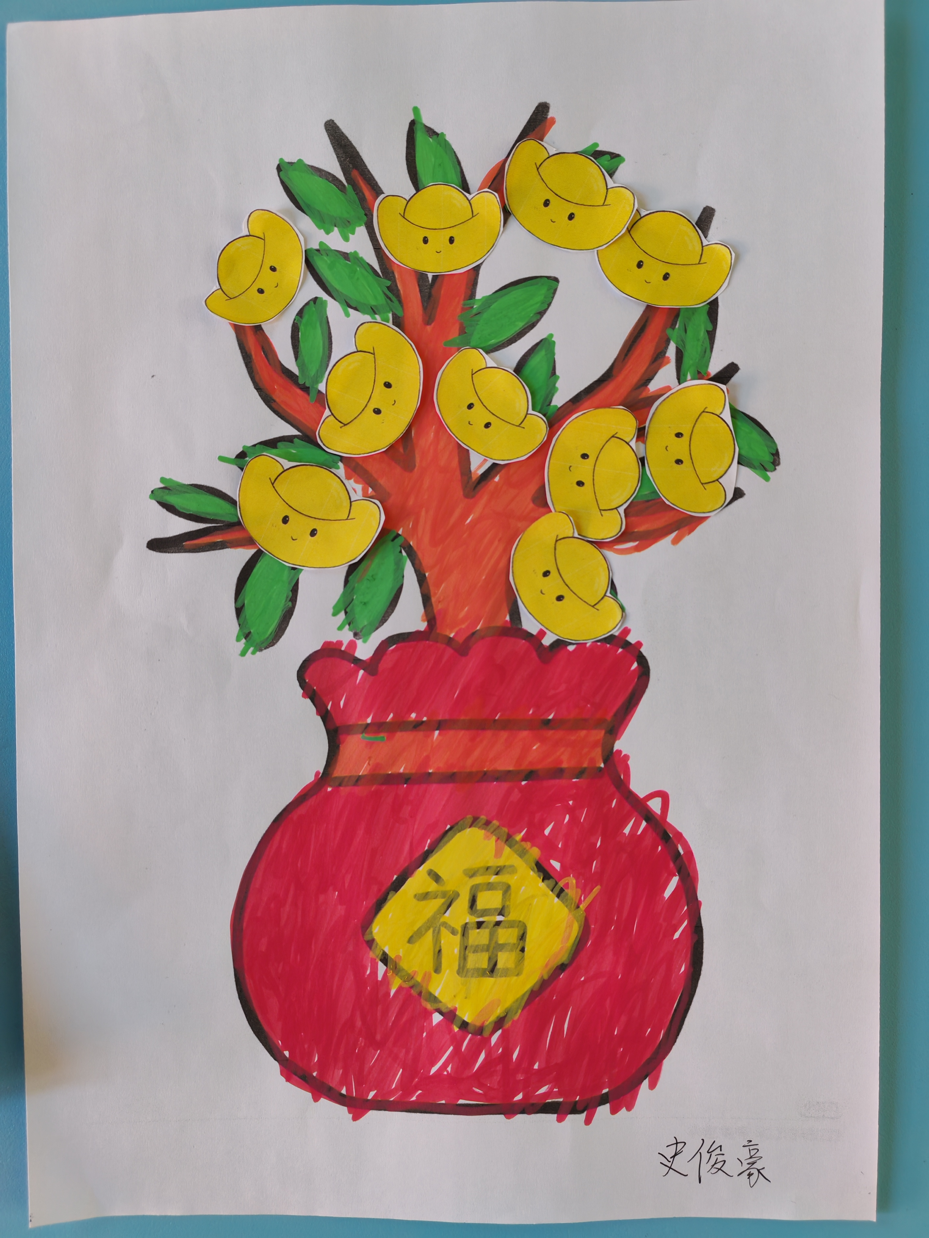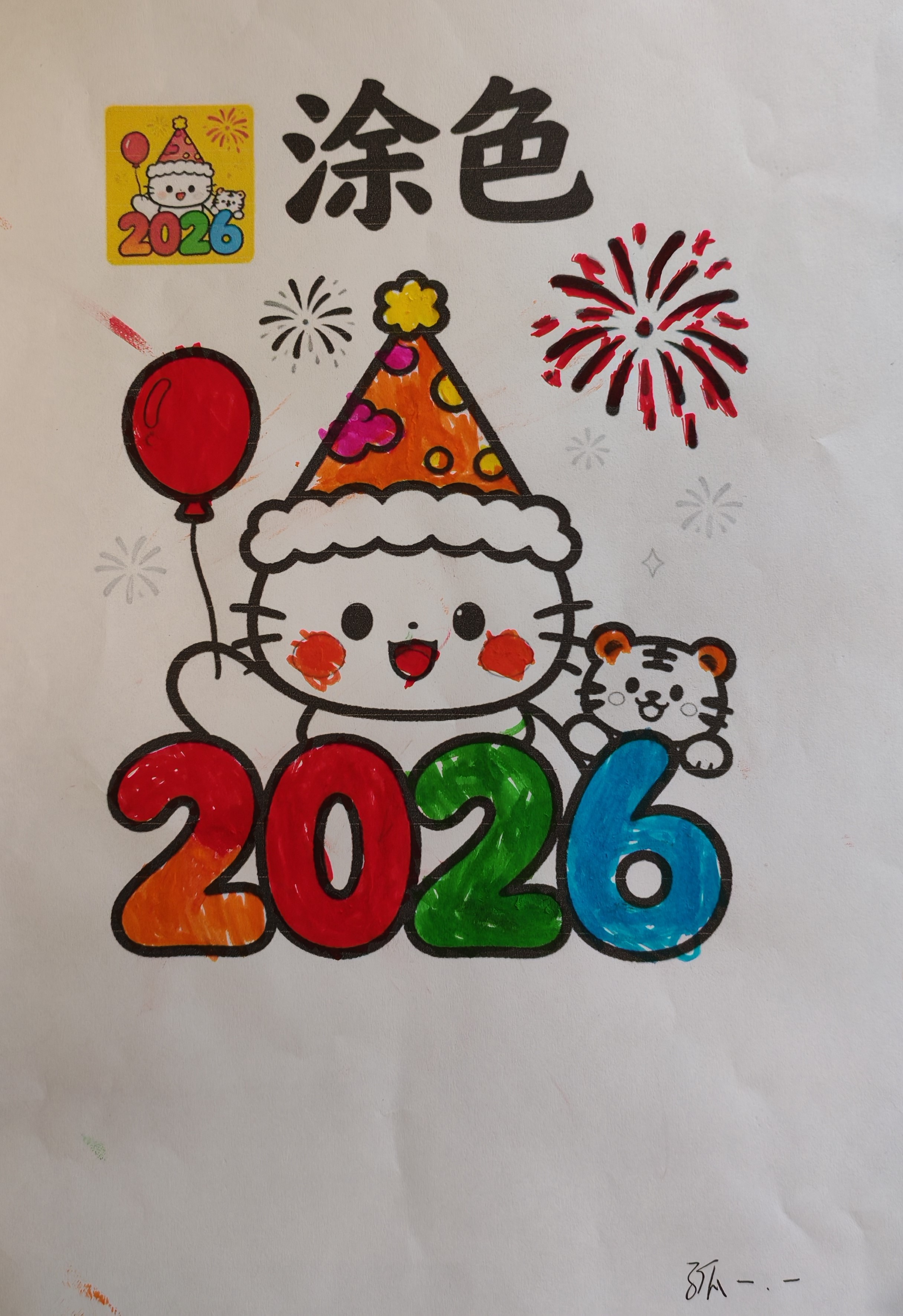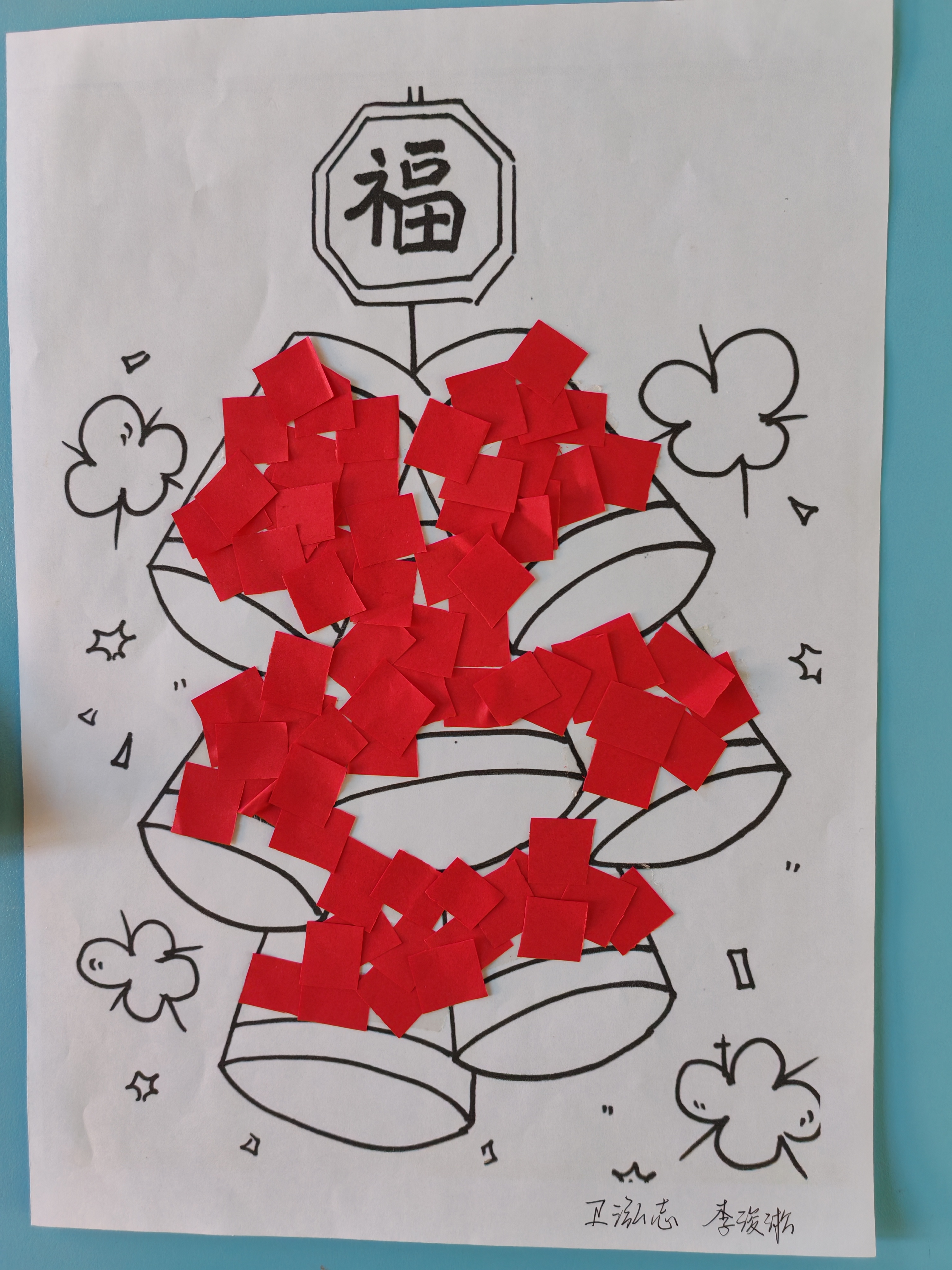 美工技能展示环节氛围热烈,全体学生以班级为单位,现场创作迎新年主题作品。填色画、粘贴画、黏土画等手工作品形式丰富多样,同学们或独立创作,或协作完成,指尖流转着创意与专注。一年级一班的刘源灏独立构思,三年级的王宇扬精心雕琢,四年级的合作小组默契配合,每一件作品都承载着孩子们的想象力与生命力。到场领导和老师轻声走到学生身边,静静欣赏创作过程,走入他们独特的思维世界,共同感受孩子们用双手编织出的美好愿景。