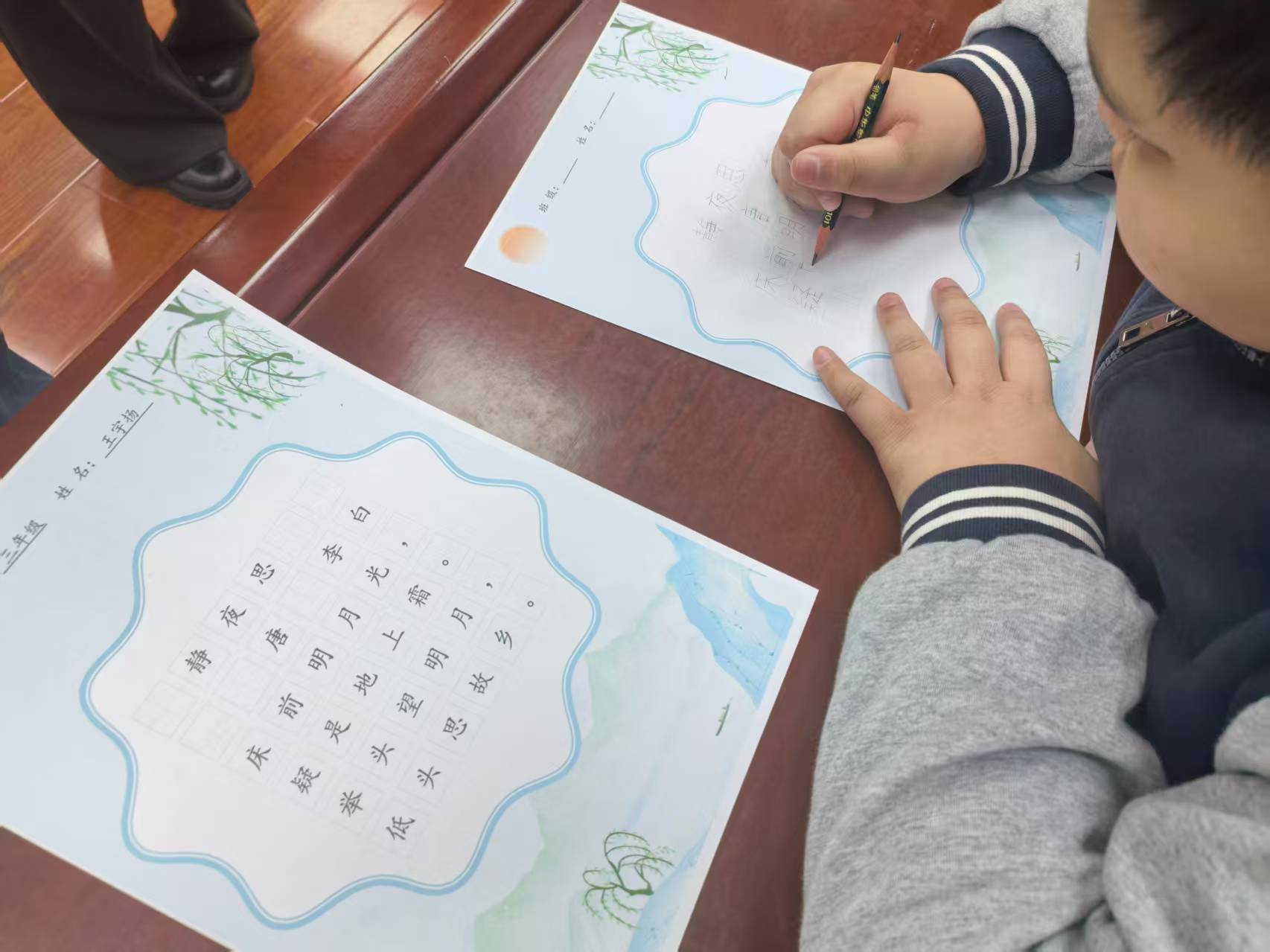在学业技能展示现场,杨程铭、王宇扬、史俊豪同学依次上台,分别展示了汉字抄写、古诗词抄写、汉字描红等书写技能,一笔一划间尽显专注与坚持;刘源灏同学的加减运算精准流畅,赢得现场阵阵掌声。