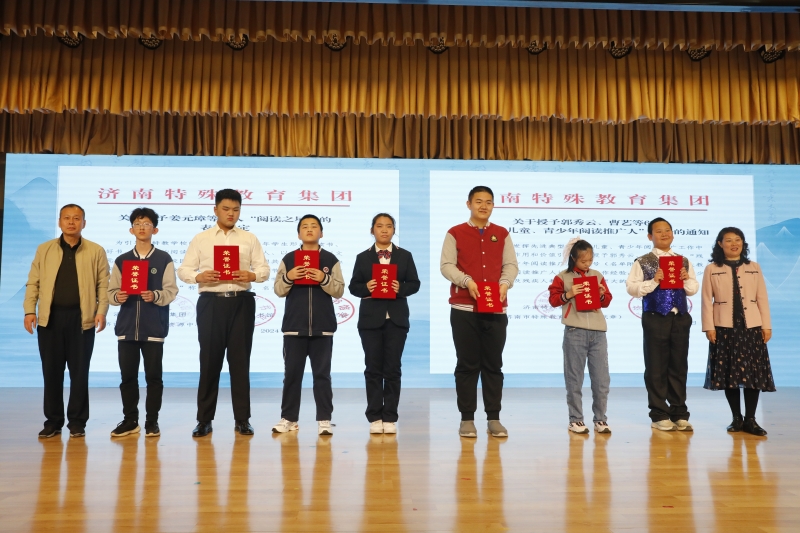 启幕仪式上,济南特殊教育集团、济南市图书馆、济南图书馆学会联合授予姜元璋等14名同学“阅读之星”称号,授予郭秀云、曹艺等62人“残疾儿童、青少年阅读推广人”称号,激励更多的残疾孩子在阅读中丰盈内心,收获成长。胡霞等4人获颁“残疾儿童、青少年阅读推广爱心大使”荣誉证书。