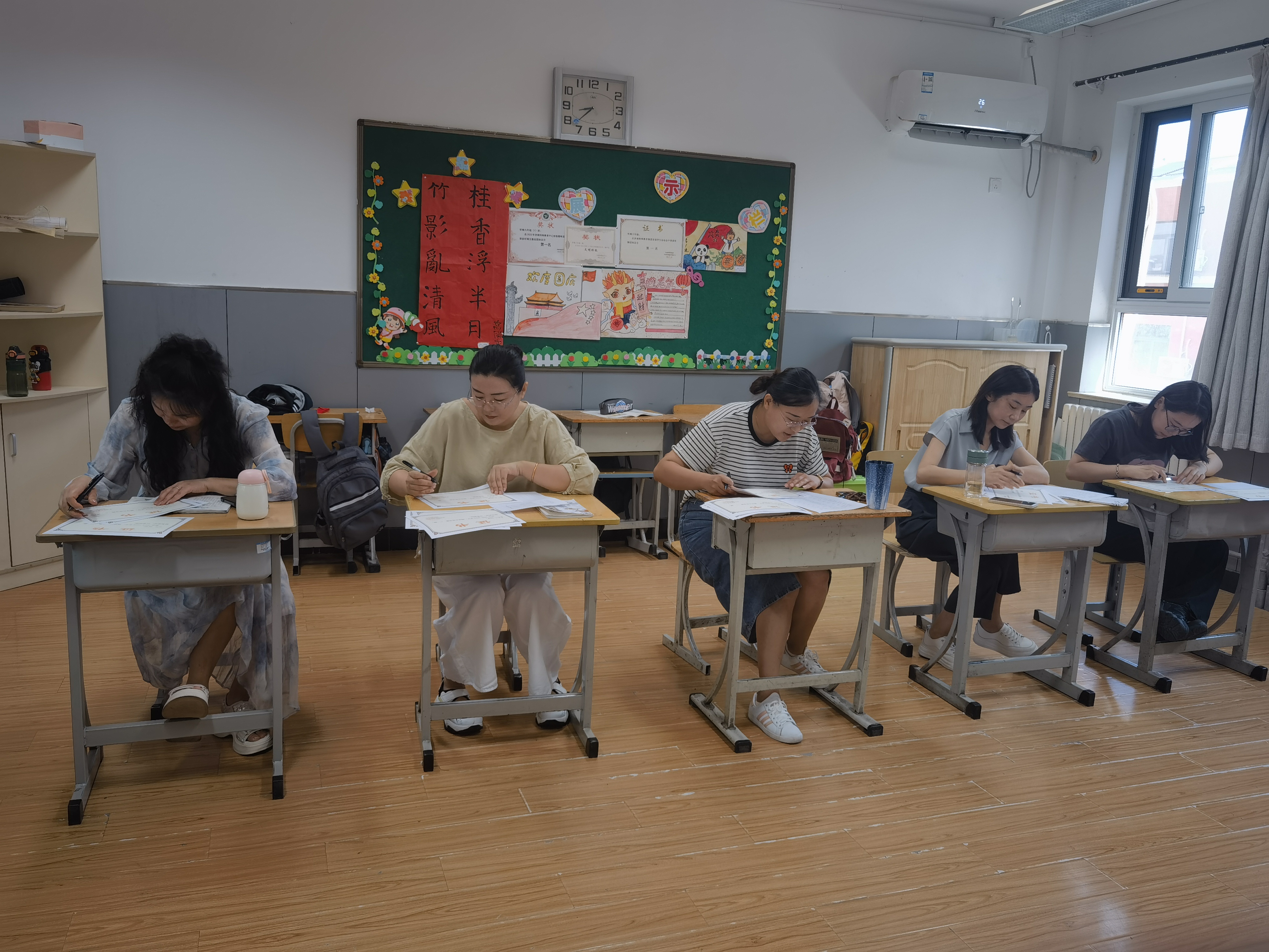 考级现场气氛热烈,井然有序,古韵悠悠,诗声琅琅,班主任老师们严肃认真,耐心聆听。通过一学期的不懈努力,孩子们早已将诗文背得滚瓜烂熟。此时此刻,教室内书声琅琅,萦绕耳边,孩子们尽情徜徉在古诗词的世界里,不亦乐乎。同学们在声情并茂地诵读中传承经典,共赏美好诗韵,开启诗意人生。