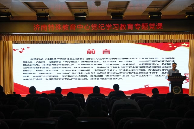 随后,离退休支部党员到演播大厅参加了由济南特殊教育中心第一党支部支部书记安继勇同志主讲的关于《条例》总则解读的党纪学习教育专题党课。